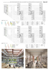 Įgyvendinant itin didelės apimties funkcinę programą, komplekso vidinė erdvė formuojama pagal miesto struktūros principus: holai ir viešosios erdvės – tai gatvės, didelės auditorijos ir susibūrimo erdvės – aikštės. Šioje struktūroje aiškiai apibrėžiami ir integruojami fakultetų, laboratorijų bei administracinių centrų korpusai. Visi šie elementai interaktyviai jungiasi tarpusavyje komplekso viduje ir stiprina ryšius tarp akademinės bei miesto aplinkos.